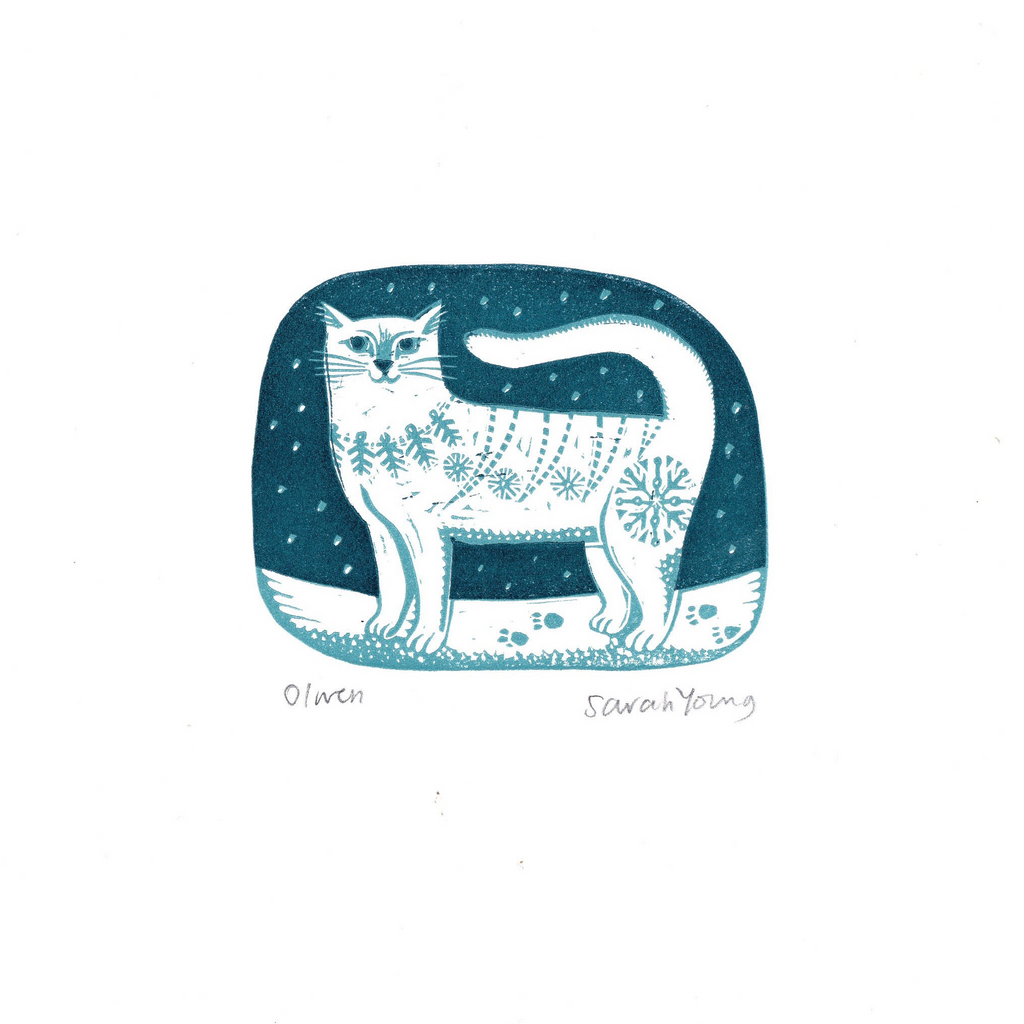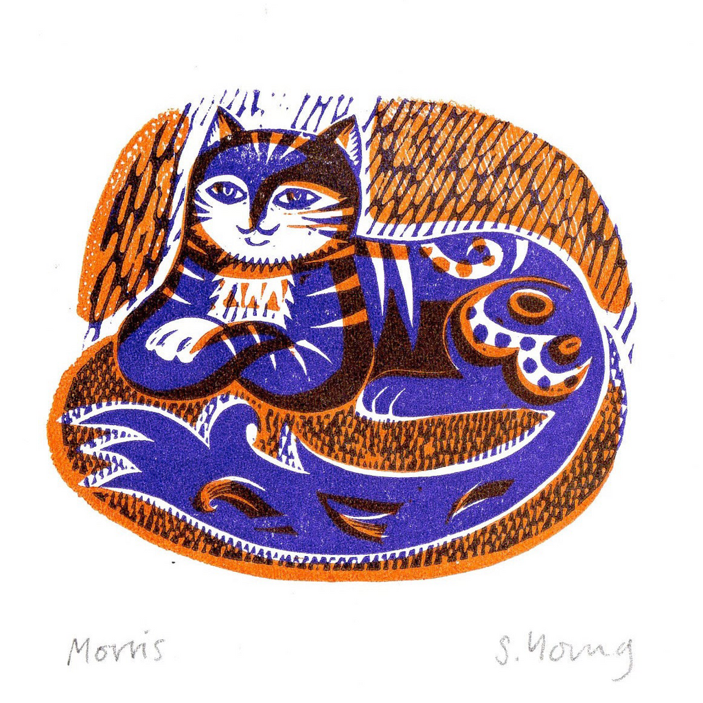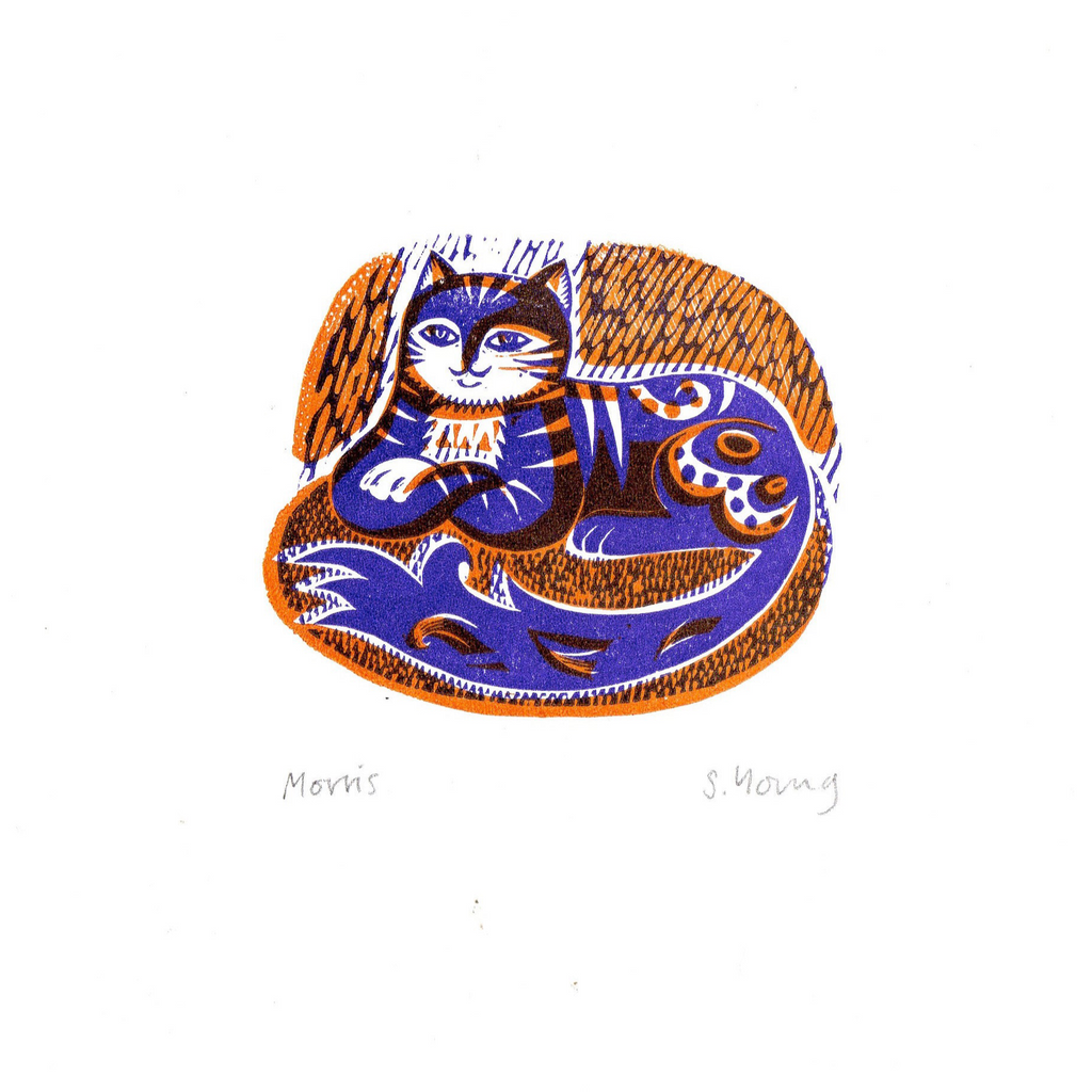 Humbert, Florence, Olwen and Morris are all original, hand printed Lino prints. They have been made with gouges and knives and printed on our little Adana press in our studio by the sea.